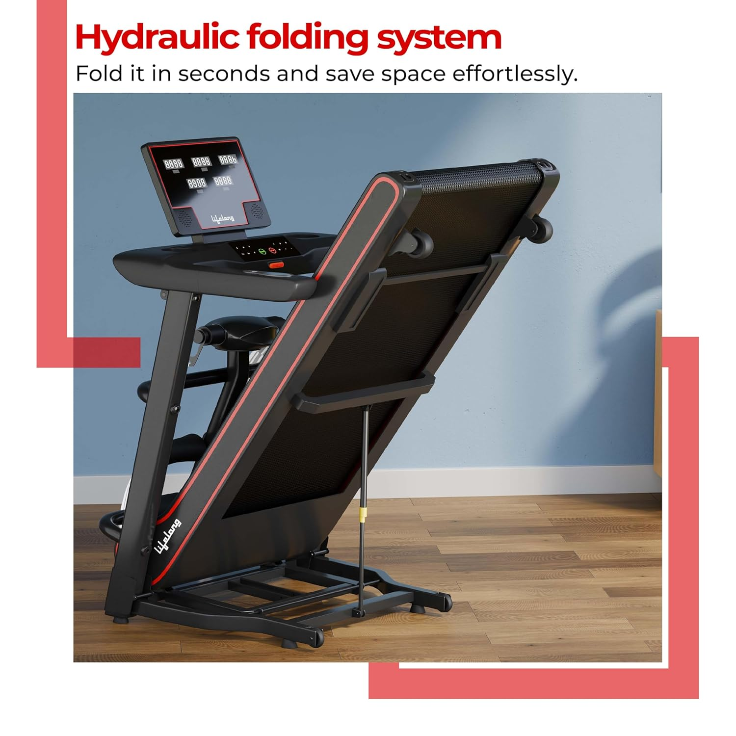 - Hydraulic Folding System: You’ll love how simple it is to fold and store. The smooth hydraulic system lets you lift, fold, and move your treadmill safely without heavy lifting.
