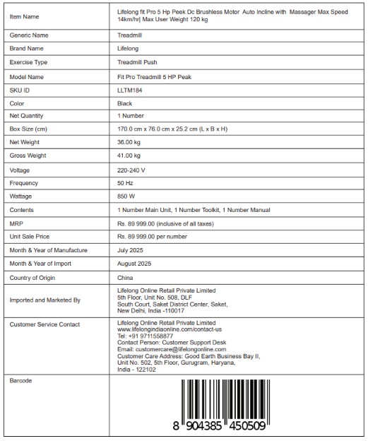 - Powerful 5HP Brushless Motor: Enjoy a quiet yet powerful workout with a durable 5HP brushless motor that adapts to your pace. Whether you’re walking, jogging, or sprinting, your treadmill keeps up with you always.